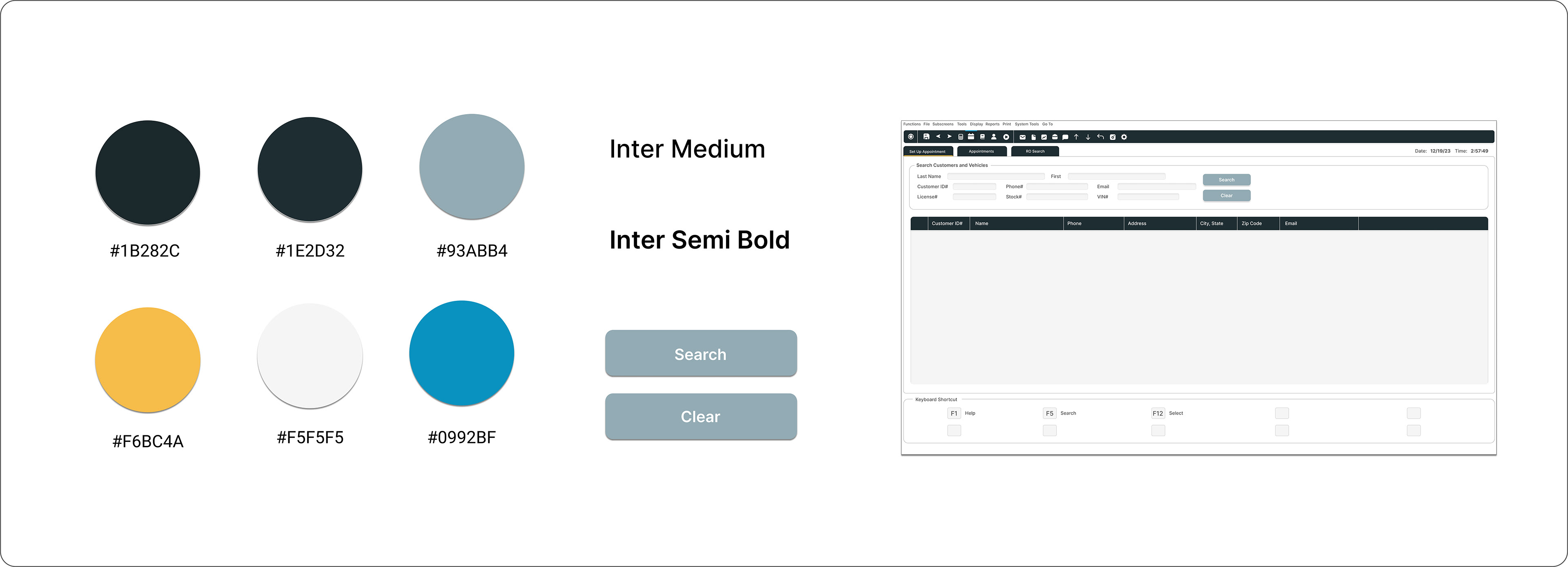 Simplified navigation bar with added tabs to go back and forth among setting up customer appointments, appointments for the day, and repair order search.